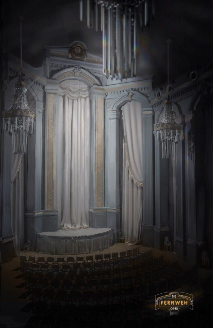 In Die Fernweh Oper you will visit a perpetual opera performed by a star in the form of a 50 ft tall opera singer named Asteria, who sings especially for you and about your foolish love for her. Just as with the stars you see at night, she has already died billions of years ago and what you see of her is her last light that reaches your eyes. It wouldn’t be an opera without a tragic story of course.